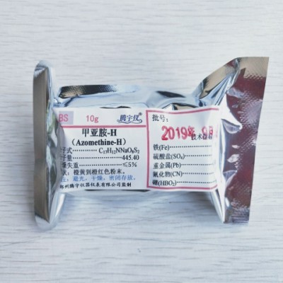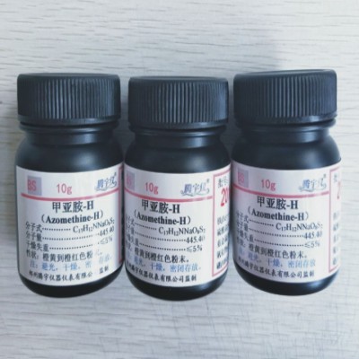 產品名稱:甲亞胺-H(甲亞胺,H-酸甲亞胺) 分子式:C17H12NNaO8S2性狀:橙黃到橙紅色粉末,無結塊。容重:0.15-0.2g/cm3。用途:適用于土壤、肥料、植株、水體中硼(B)含量的測定。發貨期:款到當天發貨我們所采用的H-酸甲亞胺的合成工藝,合成純度高,可滿足硼等微量元素的分析要求。每瓶10g包裝,內層內蓋封裝,外層鋁箔袋封裝,雙層密封裝,保質期更長。歡迎咨詢選購,量大從優!